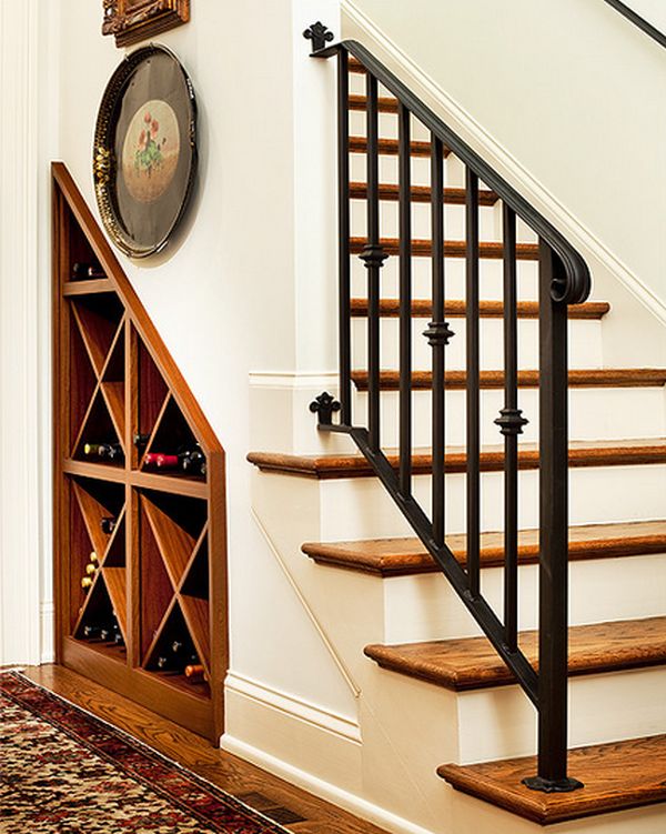 Место под лестницей является часто упускаемым из виду, но оно может стать идеальным местом для хранения вин. Устройте там полки и создайте интересный уголок.