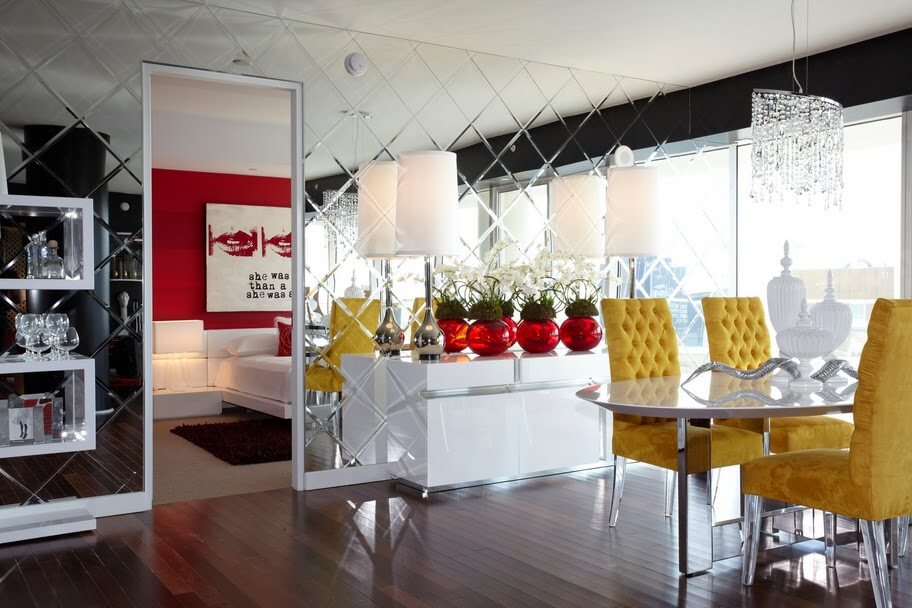 С целью расширения пространства можно использовать и зеркала. Зеркальные панели или панно, отражая свет, сделают комнату светлее и больше, как бы открывая в ней дополнительное измерение.